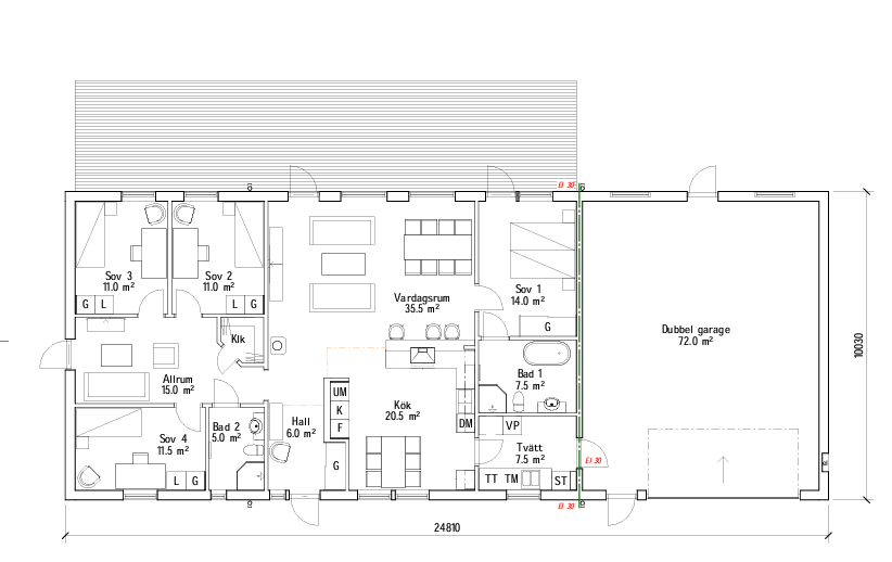 Denna version av Villa 153 är ett lysande exempel på hur vi på Götakronan anpassar våra husmodeller efter kundens unika livsstil. Här valde familjen att prioritera logistik och bekvämlighet genom att göra en smart förändring i originalritningen av Villa 153.